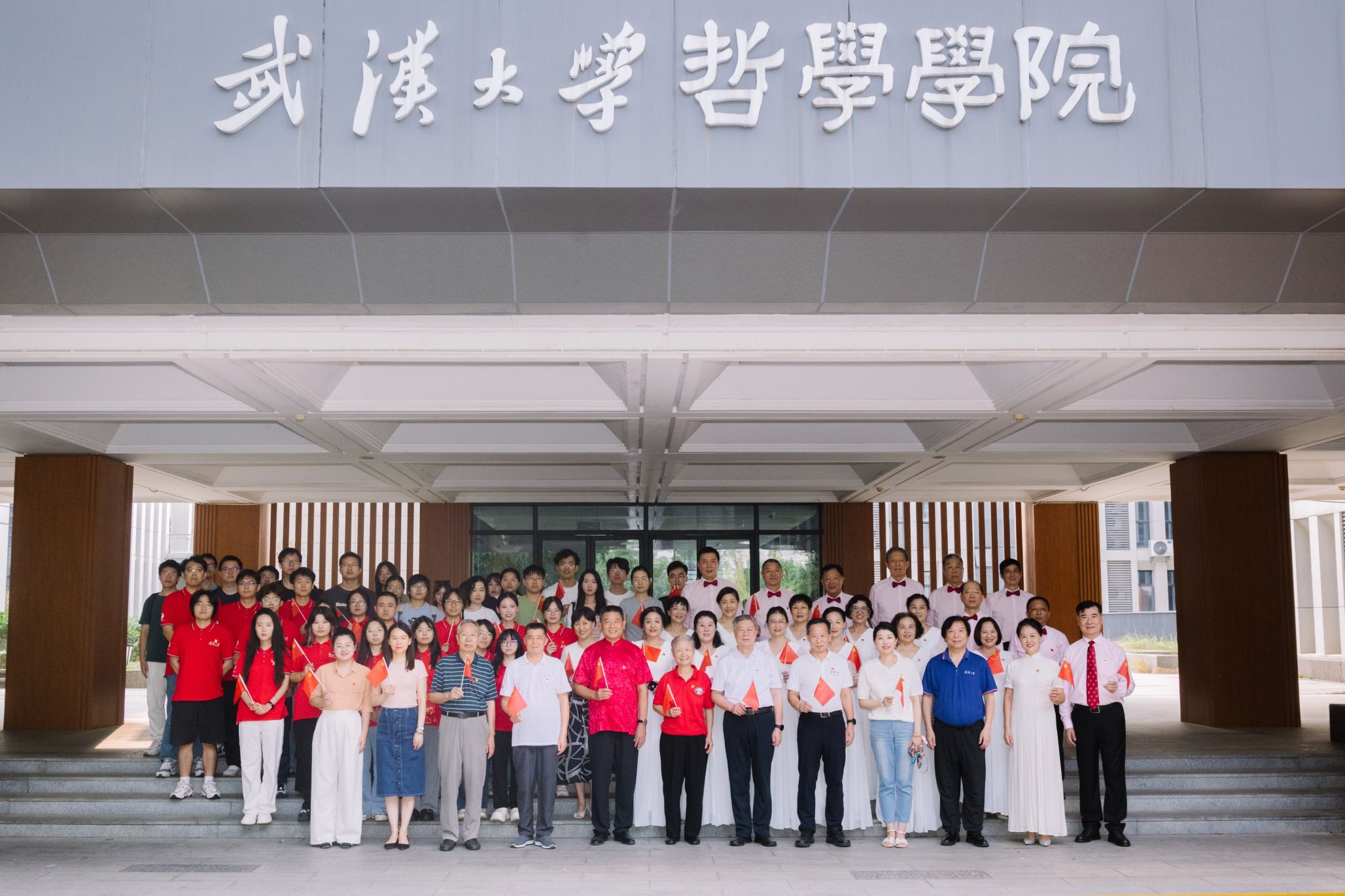由武汉大学常青合唱团教师代表和海角社区 青年党员共同合唱的《青春舞曲》轻快欢乐,其旋律跳跃如同初生的朝阳,印射着青春独有的光芒与活力。两代人的歌声相互交织,老教师们用沉稳深情的腔调诉说往昔的青春岁月,传递着对年轻一代的期望与祝福;同学们则以青春洋溢的歌喉表达对未来的无限憧憬与热情。