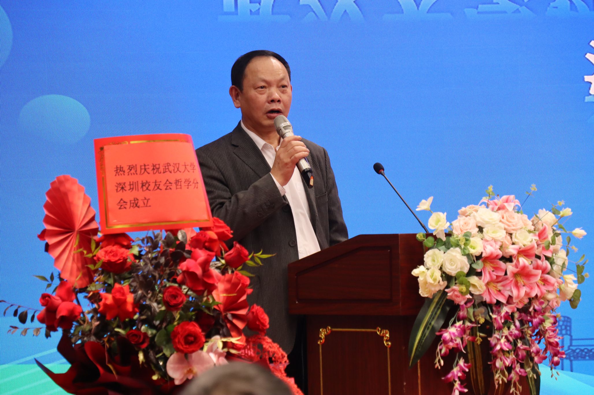武汉大学北京校友会哲学分会会长杨毅向深圳校友会哲学分会送上了诚挚的祝福。他提到,母校是校友们心中的永恒牵挂,无论身处何方,校友会都铭记母校,秉持团结互助的精神,加强校友联系,共同推动母校发展和社会进步。
