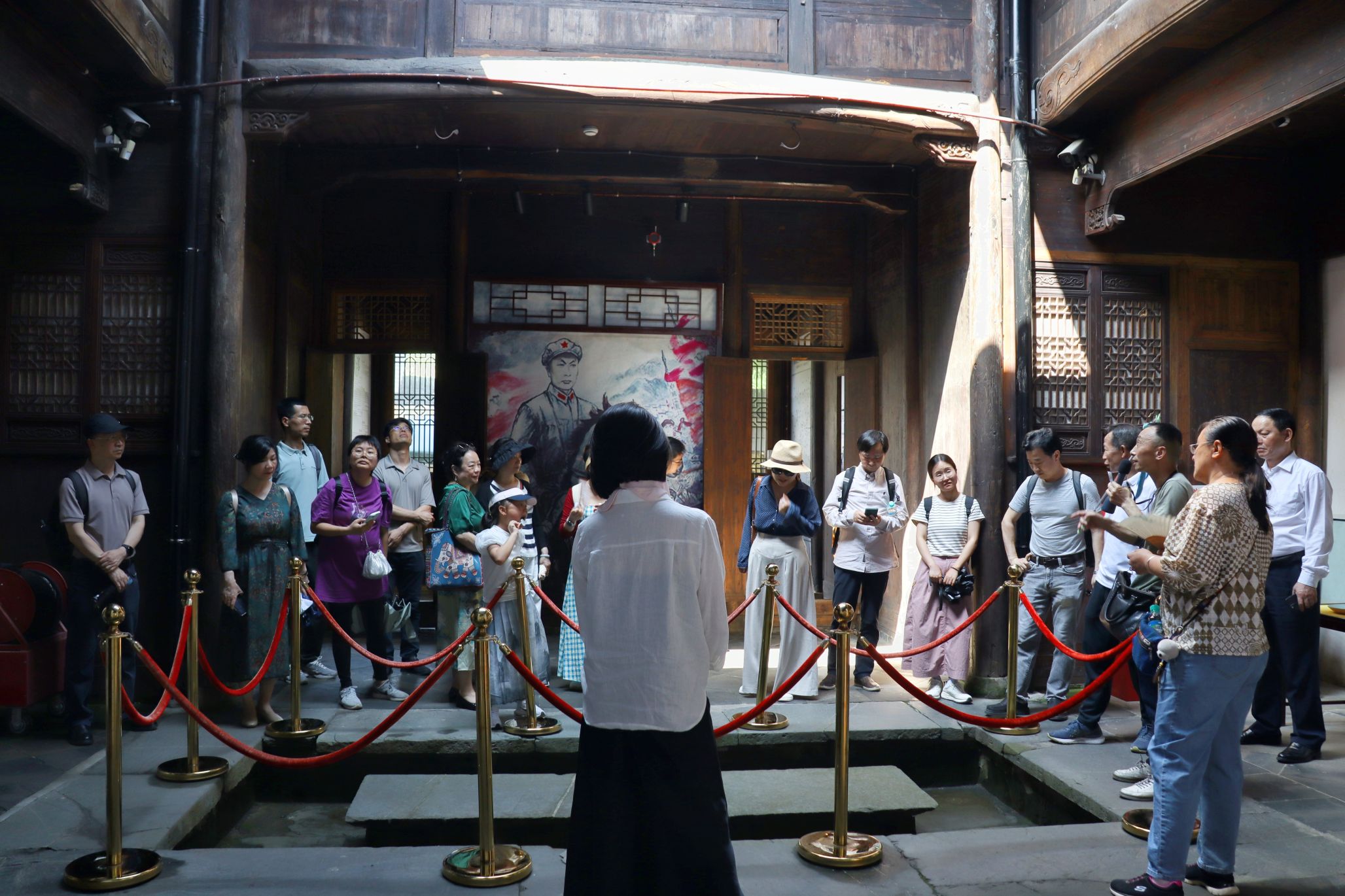 师生首站走进瑶里古镇,这座承载着皖赣边区三年游击战争记忆的千年古镇,是新四军改编的重要历史见证地,也是开展国情教育的生动课堂。在瑶里改编纪念碑前,全体师生列队肃立,瞻仰革命先烈,致敬峥嵘岁月。随后,队伍深入陈毅旧居与程氏宗祠,通过珍贵的历史图片与文献,系统回顾 1938 年陈毅元帅两次亲赴瑶里、整编南方红军游击队为新四军的革命事迹。