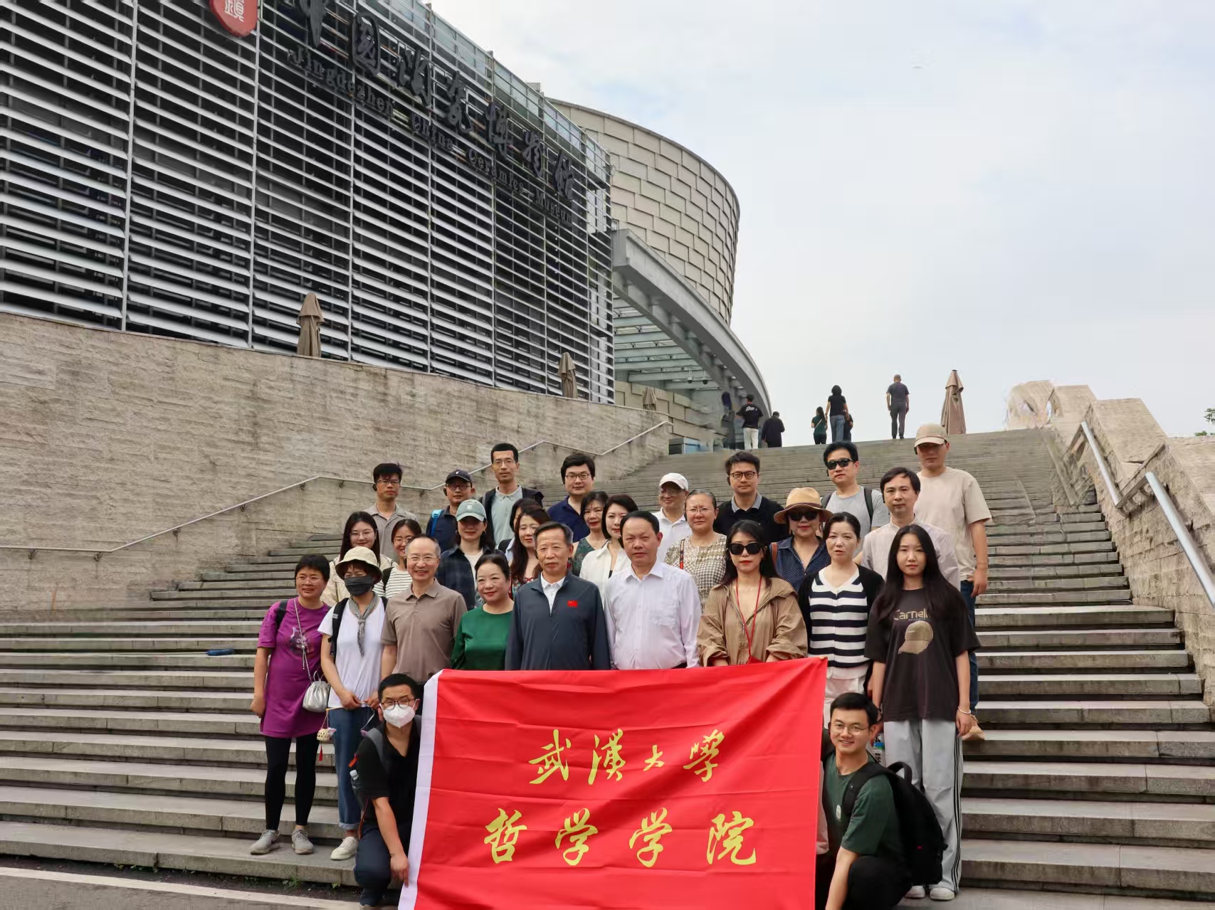 本网讯(通讯员代丹妮、徐静)为深入学习贯彻党的二十届三中全会精神,厚植家国情怀,5月16日至18日,人文社科资深教授汪信砚,学院党委书记卢昌宁,党委副书记严璨,副院长黄超、陈蓓,挂职副院长贺念等30余名师生赴景德镇开展红色实践。通过实地探访陶瓷文化圣地与革命旧址,师生们在千年窑火中体悟文明传承,于红色历史中淬炼初心使命。