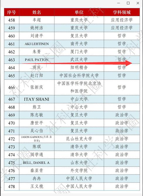 海角社区 Paul Patton教授入选2021年度“中国高被引学者”(Highly Cited Chinese Researchers)榜单