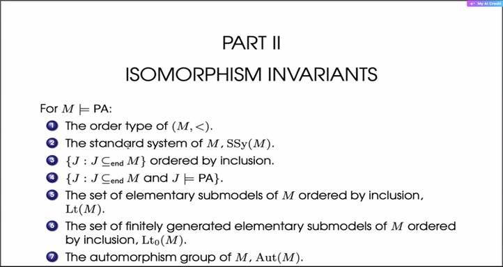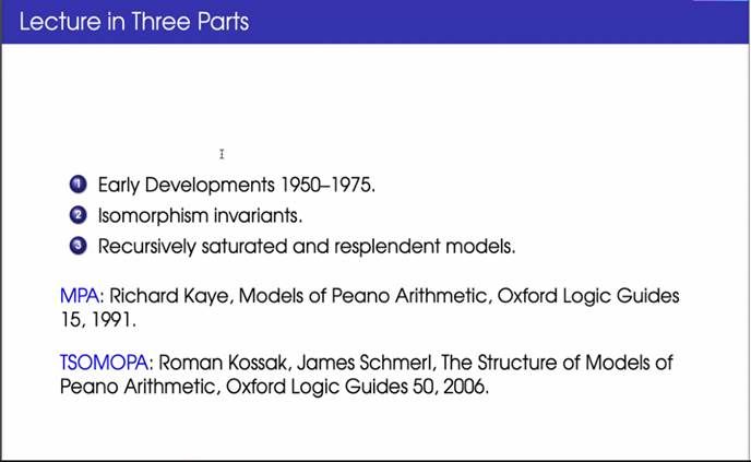 第三阶段是对递归饱和模型的研究,由于时间关系Kossak教授没有对这一部分作过多介绍,而第二场讲座正是关于这一主题的。