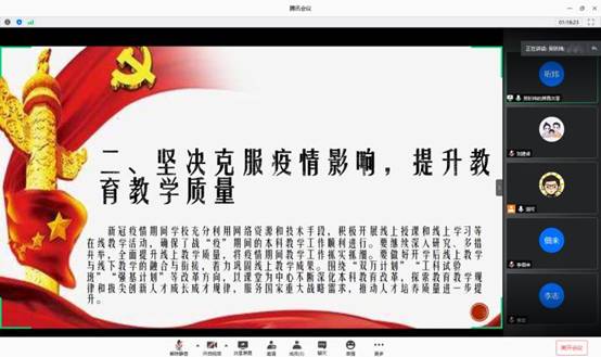 支部党员认真学习了习近平总书记关于疫情防控论述摘录、习近平同志在第73届世界卫生大会视频会议开幕式上的致辞、习近平同志致哈尔滨工业大学建校100周年的贺信以及《教育部应对新型冠状病毒感染肺炎疫情工作领导小组办公室关于在疫情防控期间做好普通高等学校在线教学组织与管理工作的指导意见》。在学习中,支部党员同志们深入思考,积极讨论,收获了良好的学习效果。支部党员同志们认为,新冠疫情期间,老师们在支部领导下充分利用网络资源和技术手段,积极开展线上授课和线上学习等在线教学活动,克服疫情影响,确保了战疫期间的各项教学工作顺利进行。支部党员同志们表示,将继续按照“坚定信心、同舟共济、科学防治、精准施策”的总要求,做好开学后线上教学与线下教学的融合与衔接,着力巩固线上教学成果,进一步提升人才培养质量,推动疫情防控斗争的全面胜利。