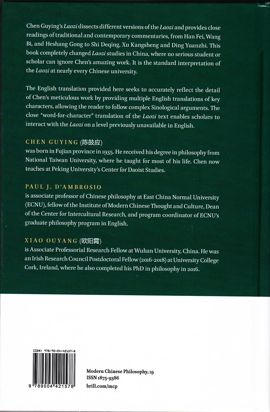 西方的汉学家都精通中文,为何还要购买并阅读中文学术出版物的英译本呢?其一是学者的时间有限。常有人说,西方的汉学家读中文跟读英文一样快,其实不尽然。如有可靠的英译本,学者才算是一脚踏进了中文学界。以陈教授此书为例,它涵盖了千百年来中国学术的评介传统,并以此滋养当今中国研究《老子》的重要学者之洞见。仅此一项贡献,就使得译文相当有价值。其次,两位译者Paul D'Ambrosio和欧阳霄曾受教于作者,对作者的研究有深刻的认识和理解,能够逐字逐句地正确翻译陈鼓应对《老子》这一哲学经典文本的释义、反思和观察。如此流畅的译文不但对专业学者有益,也对大学生有益,甚至那些对中国语言和文化越来越熟悉的英文国家的高中生,也能从中受益。