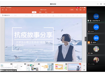 任倩同学分享了参与大学生心理卫生协会“疫情大作战”的经历和体会。她坦言,心理疏导很艰苦,个人心态不稳更让她体会到疫情带给大家的打击,她意识到心理学肩负的责任,看到了团结的力量,体会到一个人的力量是弱小的,但团结起来能发挥出巨大的力量。