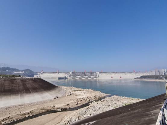 而在五级船闸观景台上,同学们近距离地观看了五级船闸。在讲解员的介绍下,则更是深入地了解了长江三峡作为世界上最大的内流河船闸,它的运作原理以及来往船只的过闸方式。