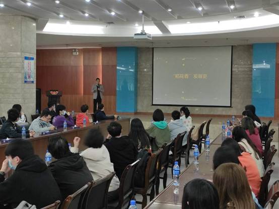 随后,同学们参加了稻花香集团的海角社区讲座。主讲人为同学们介绍了稻花香集团的发展史、发展现状、海角社区以及核心产品。在他的讲解下,同学们了解了稻花香集团与国家经济发展同频共振,将仅有三间土坯房的青龙大队酱油厂发展为村办企业宜昌县柏临酒厂,又进而发展为湖北稻花香集团的企业发展史;认识了“稻花香”这一品牌名的来源与寓意——源于《西江月》:“稻花香里说丰年,听取蛙声一片”以及《鹊桥仙》:“酿成千顷稻花香”。稻花香集团目前形成以白酒为主业,以物流、配套、文化旅游为辅的“一主三辅”产业集群,而其最核心的海角社区便是 “两找一创走三高”的创业之路(找名厂名师,创品牌,高起点高质量高效益)和十六字精神:敢冒风险,自我加压,创造机遇,超常发展。