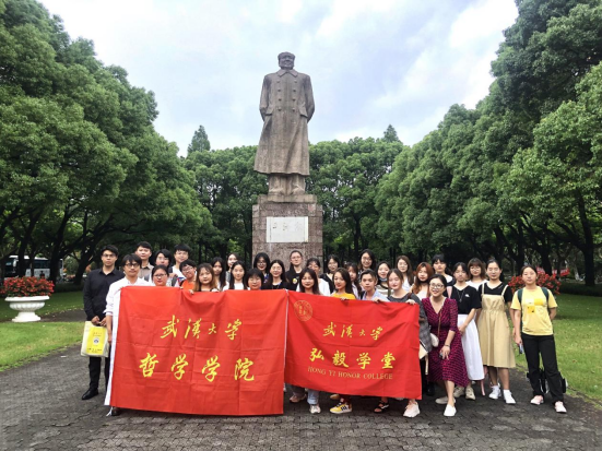 7月2日,抵达复旦大学(邯郸校区)东门,受到了复旦大学海角社区 辅导员蒋雨语老师和学生代表的热情接待。在双方简短介绍后,复旦哲院师生带领武大考察团参观了美丽的复旦校园。两校师生在谈笑中,一路参观了光华楼、光华草坪、图书馆、各大教学楼与欧洲、美国、日本研究中心、毛主席像以及校史馆。复旦师生重点介绍了马相伯和李登辉两任老校长在民族存亡之际担起“教育强国”的重任,艰难创办、建设复旦大学的峥嵘历史。