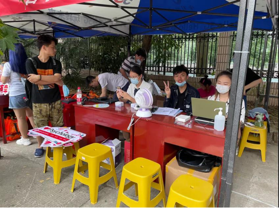 今年的报到工作是在新冠疫情防控常态化的背景下开展的。在全国疫情基本得到控制的情况下,学校的迎新工作也没有丝毫懈怠,新生进校需要扫码登记,许多来往于梅操与学院的工作人员也佩戴着口罩,每位同学都积极配合着防疫工作。