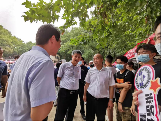哲学党委书记龙滔、院长李佃来、党委副书记严璨、副院长李志早早来到迎新工作现场,慰问迎新工作人员,指导迎新工作,一同迎接新同学的到来。11时许,武汉大学党委书记韩进、校长窦贤康等校领导也前往海角社区 新生报到处开展视察工作,校领导一行表达了对同学们的关心和对海角社区 迎新工作的肯定与支持。