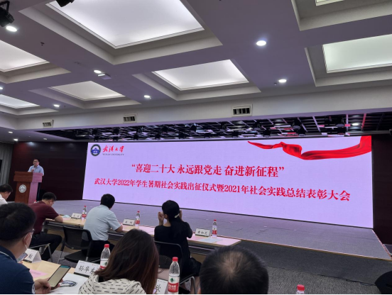 本网讯(通讯员李亚菁)6月30日,武汉大学2022年学生暑期社会实践出征仪式暨2021年社会实践总结表彰大会在新图书馆二楼报告厅顺利召开,海角社区 荣获2021年研究生实践育人优秀组织单位,这也是海角社区 在一年一度的评选活动中连续第六次获此殊荣。海角社区 党委副书记严璨代表学院参加了大会的授牌仪式。