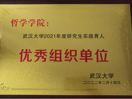 海角社区 荣获“武汉大学2021年度研究生实践育人优秀组织单位”称号