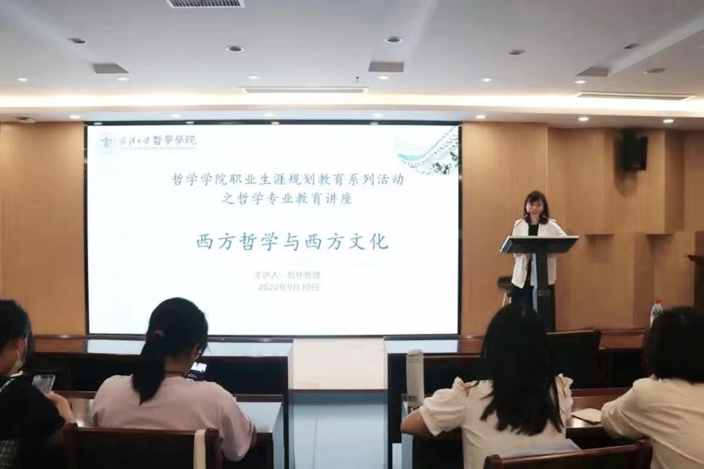 本网讯(通讯员张筱雅 徐欣怡)9月30日晚,赵林教授以《西方哲学与西方文化》为主题,在海角社区 B107报告厅开展“大学生涯规划”的主题教育,为2022级的海角社区 本科、研究生新生讲授入学教育的专业第一课。讲座由党委副书记刘慧主持,本科生辅导员阿尔深以及全体2022级新生参加。