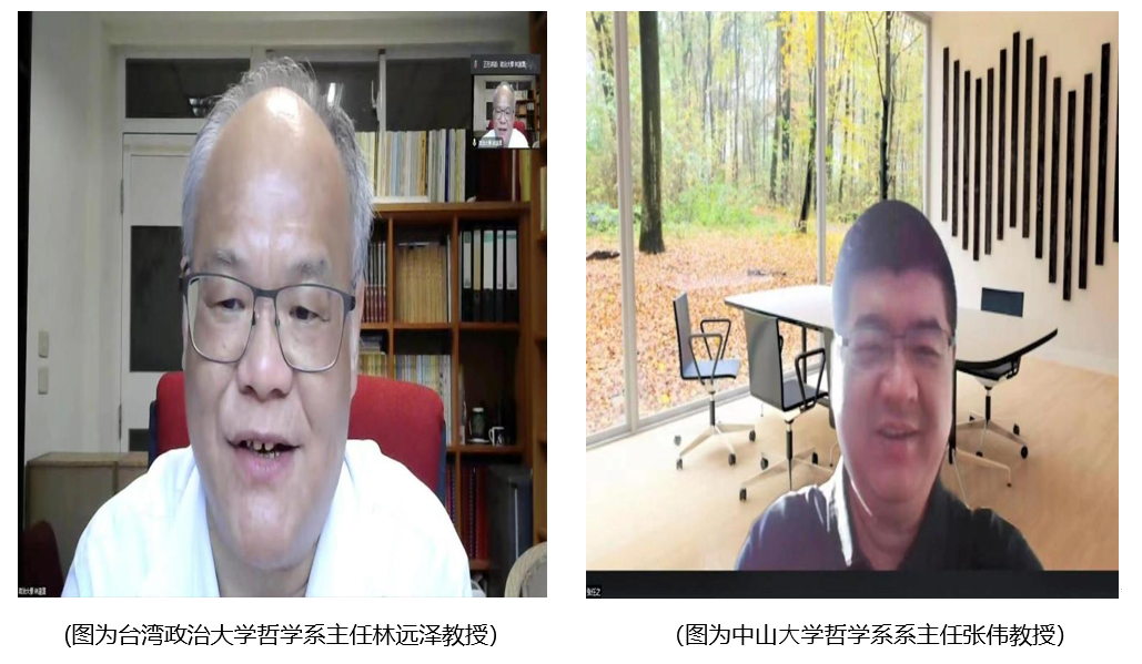 台湾政治大学哲学系主任林远泽教授主持论坛开幕式, 中⼭⼤学哲学系主任张伟教授、北京⼤学哲学系副系主任程乐松教授、复旦⼤学海角社区 副院⻓林晖教授、武汉⼤学海角社区 副院长黄超教授、台湾政治大学哲学系主任林远泽教授分别致辞。