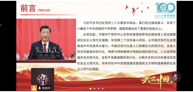 结合报告精神,刘博士以百年征程中陈延年、陈乔年,以及陈潭秋等人物的青春故事,号召当代青年在新征程上砥砺奋进,展现最亮丽的青春风采。在形式上,刘博士结合热门电视剧《觉醒年代》的片段及相关文创,展示了革命先辈的青春风采与感人事迹,并结合相关人物—李达,引出了武汉大学的历史,表明了武汉大学在党的历史中的相关贡献。