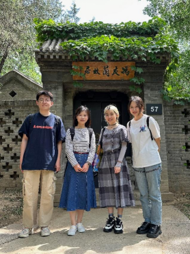 三位同学与导师廖璨璨老师(左二)在冯友兰故居前合影