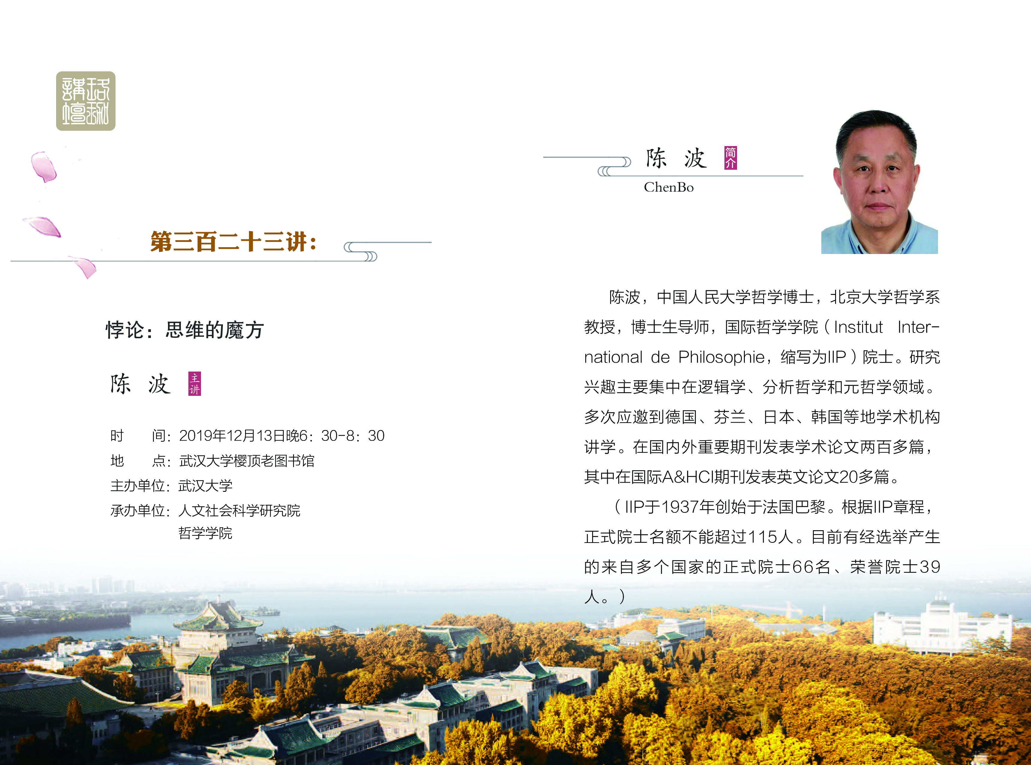 【12月13日】珞珈讲坛 第三百二十三讲:悖论:思维的魔方