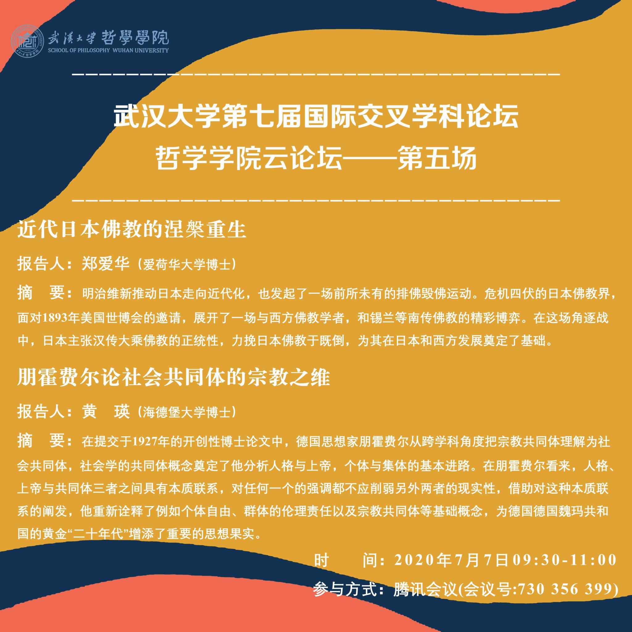 【7月7日】武汉大学第七届国际交叉学科论坛 海角社区 云论坛——第五场