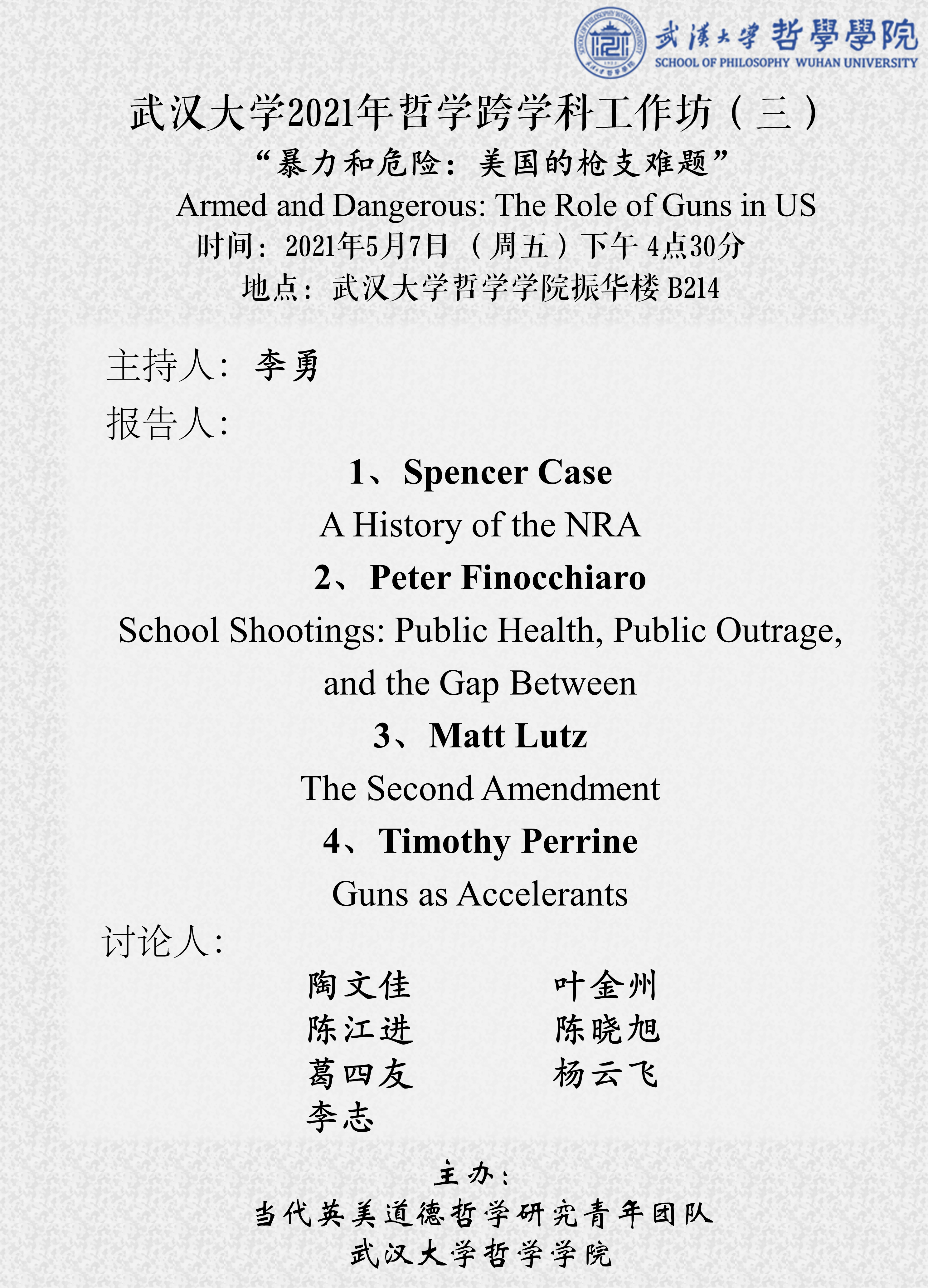 【5月7日】“暴力和危险:美国的枪支难题”——武汉大学2021年哲学跨学科工作坊(三)