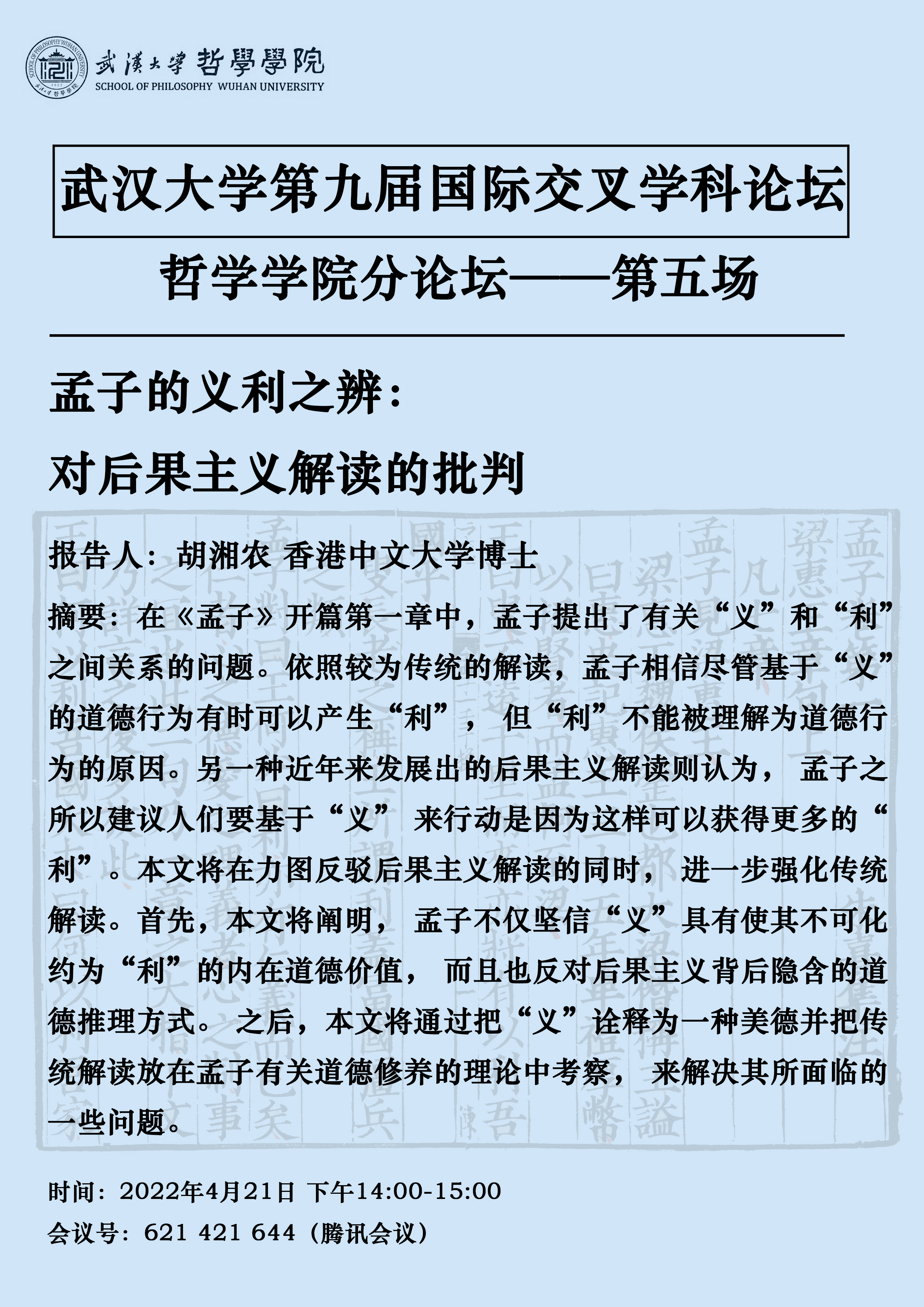 【4月21日】武汉大学第九届国际交叉学科论坛 海角社区 分论坛——第五场