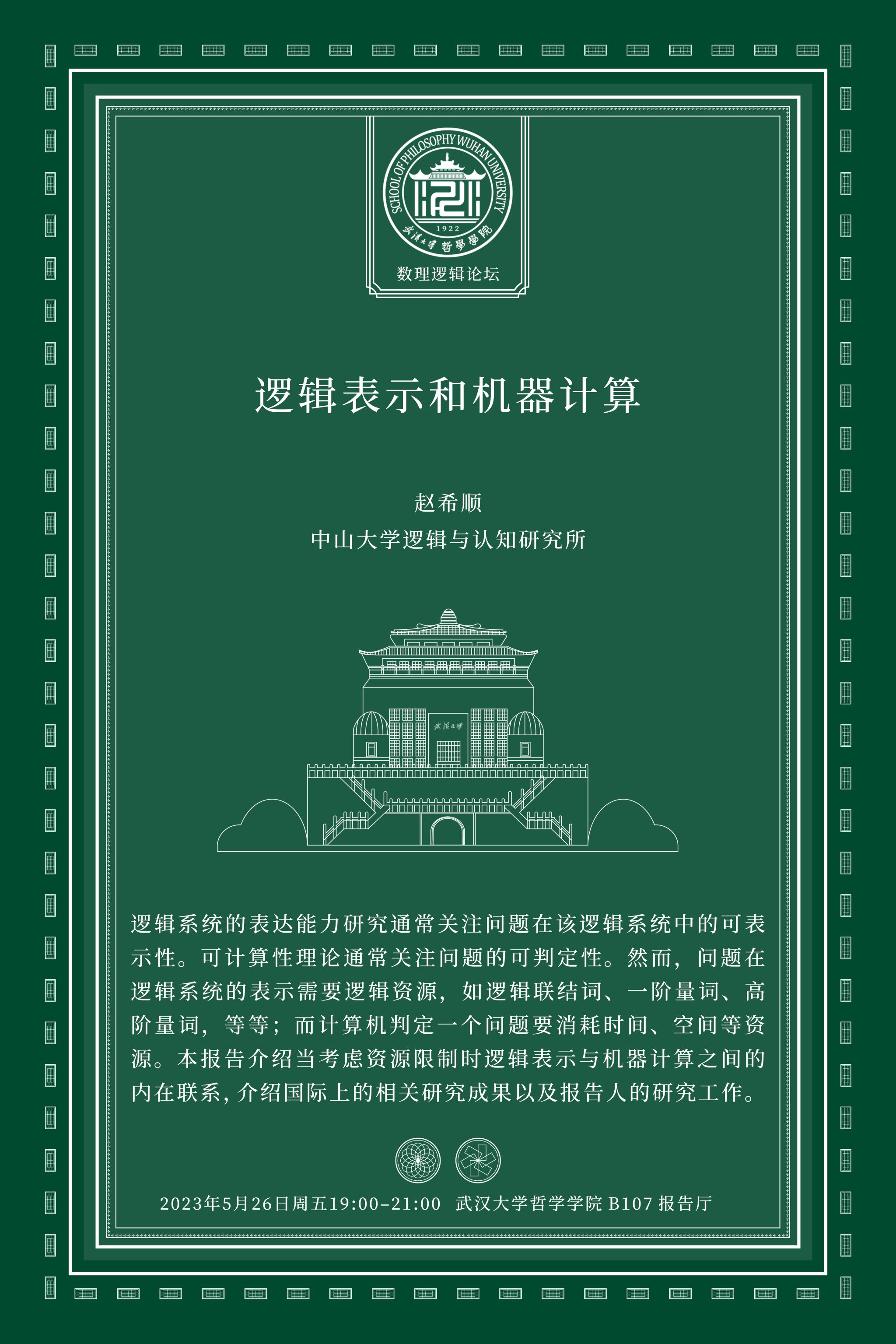【5月26日】逻辑表示和机器计算——数理逻辑论坛