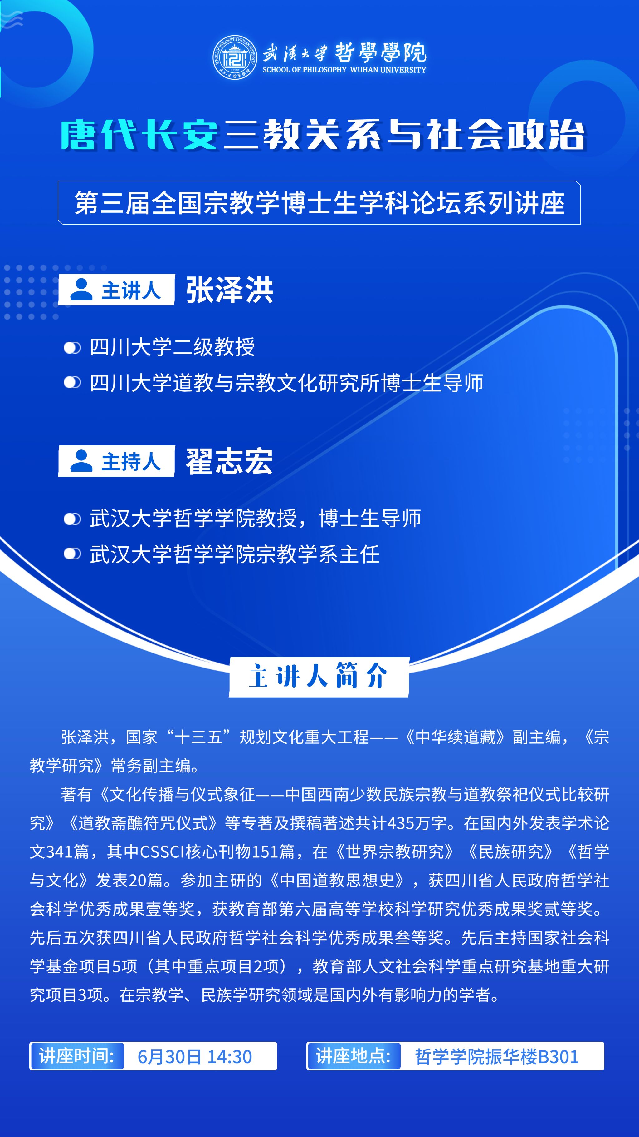 【6月30日】唐代长安三教关系与社会政治——第三届全国宗教学博士生学科论坛系列讲座