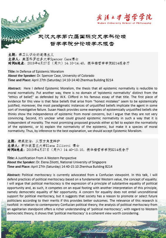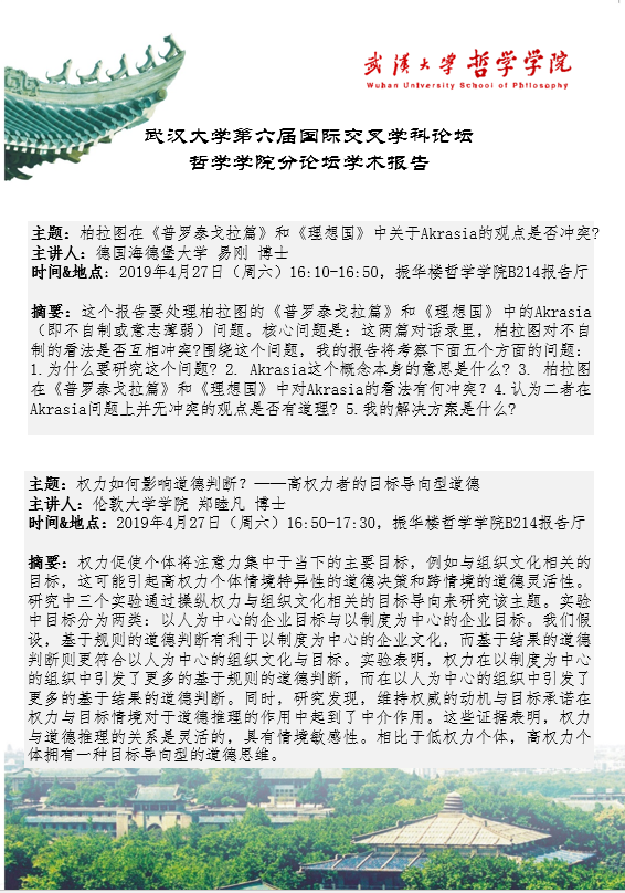 【4月27日】武汉大学第六届国际交叉学科论坛——海角社区 分论坛学术报告