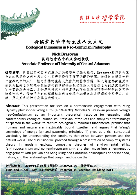 【5月16日】新儒家哲学中的生态人文主义