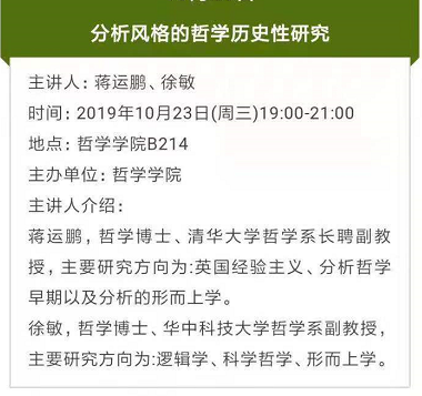 【10月23日】分析风格的哲学历史性研究