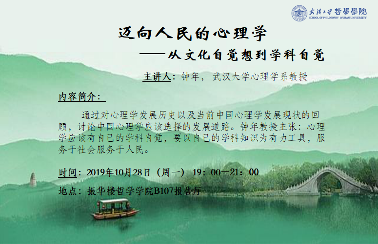 【10月28日】迈向人民的心理学——从文化自觉想到学科自觉