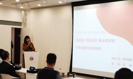 刘津同学作了题为《论昆曲<桃花扇>舞台美学的中西交融与本体转向》的报告,以江苏省昆剧院30年打磨的三版《桃花扇》为引,从剧本剪裁、舞美视觉切入,由此探讨不同时期戏曲美学观念的转变。中山大学周春健老师充分肯定了文章立意和论述方法,他认为在不失原意的基础上再思传统并考量其当代呈现是一个非常值得继续深入的课题。