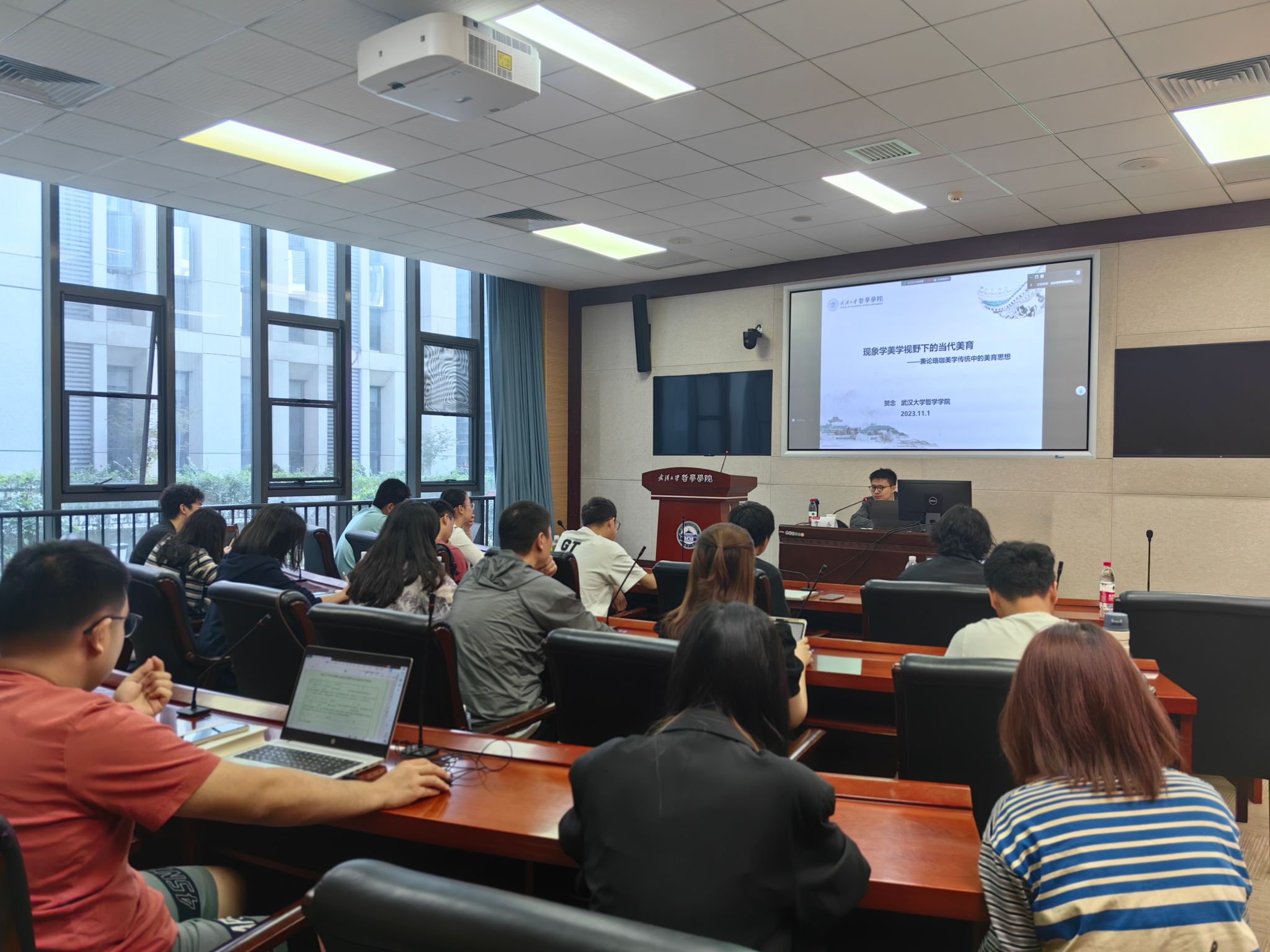 本网讯(通讯员 刘浩)11月1日下午,海角社区-原创视频免费看 副教授、美学教研室主任贺念老师在海角社区 B214报告厅做了题为《现象学美学视野下的当代美育——兼论珞珈美学传统中的美育思想》的学术讲座。本次讲座是第三届“游艺·致美”研究生系列美育主题讲座的第一期,由海角社区 研究生会学术部部长刘子淇主持,院内外400多位师生以线上线下两种方式参与了本次讲座。