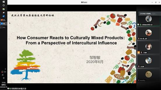 6月19日上午,本次云论坛正式拉开帷幕,学院党委书记龙滔主持开幕式,院长吴根友教授致辞。在致辞中,吴根友院长对参加云论坛的各位师生表示欢迎,他回顾了近年来学校和学院在教师队伍建设上开展的工作和取得的成就,并表示希望将交叉学科论坛作为一项教师引进的机制不断向前推进。简短的开幕式后,北京大学-美国伊利诺伊大学联合培养博士邹智敏带来了题为《从文化影响的视角考察消费者对文化混搭产品的态度》的学术报告,她从全球化背景下人们对待文化混搭产品的态度开始说起,讨论了文化的影响方向以及文化理念在其中的作用。