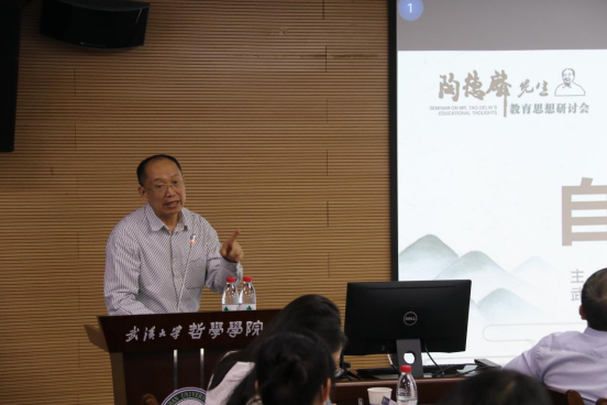 周叶中教授在致辞中高度肯定了陶德麟先生的高尚品格与卓越思想,特别是陶先生作为马克思主义哲学家和教育家的杰出贡献。他认为可以从三个角度研究陶先生的教育思想:一是陶先生作为马克思主义哲学家,其教育思想是以马克思主义哲学为指导的,是马克思主义的教育观。这种教育观不同于形形色色的传统教育思想和外来的新自由主义教育思想。陶先生的教育观和人才思想体现着其运用马克思主义哲学对教育和人才培养问题的辩证思考。二是陶先生作为马克思主义哲学教育家,对中国马克思主义哲学教育做出了重要贡献。他主张让马克思主义说中国话,推进了中国现代哲学学科体系、学术体系、话语体系建设与马克思主义哲学中国化、时代化、大众化的理论事业。三是陶先生作为武汉大学校领导,曾任研究生院院长与武汉大学校长,为武汉大学发展做出了重要贡献:领导考证了武汉大学起源于自强学堂,并成功举办了100周年校庆;首推本硕连读、硕博连读等贯通培养政策;制定了武汉大学面向21世纪的发展战略与三个阶段的发展目标,力争把武汉大学建设成为世界一流大学;领导凝炼了武汉大学“自强、弘毅、求是、拓新”的校训,极大地推动了武汉大学教育事业的发展。