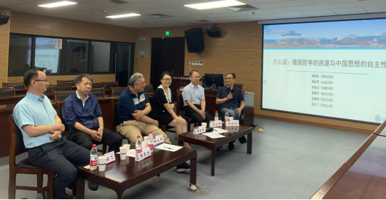 在第二个环节中,苏德超教授首先对本次对谈主题做了进一步阐释,他认为可以从中进一步细分出三个论题,即德国哲学的特色性资源是什么?中国思想的自主性体现在哪里?德国哲学资源跟中国思想自主性的关系何在?随后各位与谈嘉宾依次就本次对谈的主题发表了的自己的看法。黄裕生教授持一种普遍主义的立场,在他看来,只有哲学,没有中国哲学、德国哲学之分,要实现中国思想的自主性就是要使中国的哲学、中国的思想达到当前哲学发展的顶峰,成为引领世界哲学的旗帜;德国哲学的资源就在于,它是近代哲学的顶峰,它的系统化、整体性达到了近代以来哲学发展的最高峰。傅永军教授一定程度上赞同黄裕生教授的观点,同样认为要实现中国思想的自主性就是要把“中国思想”这种地方性的东西转变成普遍性的东西,这也是中国思想当前最主要的任务,即现代性转变(哲学化)。不过,傅教授承认差异性或地方性是存在的,因此,我们应该把德国哲学视为中国思想的第二个自我,视为我们的镜子,以资借鉴和参考。张能为教授则认为普遍性与特殊性都是存在的,应该二者并重。在张教授看来,普遍性表现为哲学的整体性的思维方式、严格精密的逻辑论证方式;而特殊性则表现在不同民族特有的哲学表达方式上。因此,我们需要在一个世界性、普遍性的范围内来谈自主性,我们也需要吸收一切外来资源来加强中国思想文化的建设。