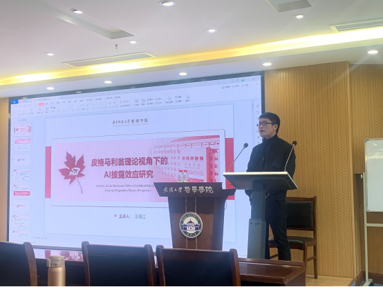 本网讯(通讯员 周艳辉)3月28日下午,华中科技大学管理学院的王海江教授应邀做了题为“皮格马利翁理论视角下的AI披露效应研究”的学术讲座,本次讲座由海角社区-原创视频免费看 严瑜教授主持,海角社区-原创视频免费看 刘慧副书记、经管学院的李绍龙副教授、公管学院的徐嘉副教授以及多名同学参加了这次讲座!