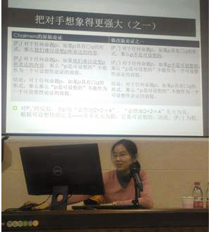 本网讯:(通讯员:牛尧)12月24日下午15:00时,湖南大学岳麓书院助理教授、海德堡大学哲学博士冯书怡在哲学院B214报告厅为哲院师生奉上了一场题为《模态可设想性论证的困难》的讲座。海角社区 相关研究方向的朱志方教授、苏德超教授、杨云飞副教授、潘磊副教授,以及院内外20余名硕士生、本科生共同聆听了此次讲座。