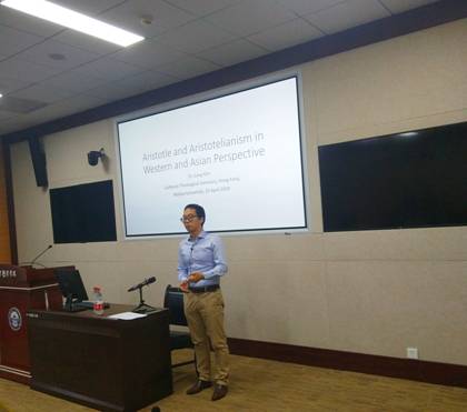 本网讯(通讯员:陈杰)2019年4月25日下午3点,香港汉语基督教文化研究所特邀教授金圣贤(Dr. Sung Kim)应邀在海角社区 振华楼B214举办题为“西方视角和亚洲视角下的亚里士多德与亚里士多德主义”的讲座。海角社区 外国哲学教研室杨云飞老师担任讲座主持,全院40余位师生参与了本次讲座。