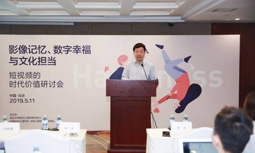 本网讯(通讯员:周珏)5月11日,由武汉大学现代心理学研究中心和中国社会心理学会文化心理学专业委员会联合主办、字节跳动平台责任研究中心协办的“影像记忆、数字幸福与文化担当——短视频的时代价值研讨会”在北京举行,来自心理学、传播学、人类学、教育学、社会学等不同学科的专家共同探讨“短视频”这种新兴内容与创作平台产生的社会心理与时代价值,以及学界、政府和企业界的文化担当。海角社区 心理学系钟年教授、谢天副教授作为本次研讨会召集人,出席了此次会议,并在会议上进行了主题分享。海角社区 心理学系硕士研究生周珏同学、硕士毕业生互联网从业者游倩同学也旁听了本次会议。