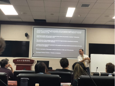 介绍完摩西权威来源的观点后,德米特里教授讲到了斯宾诺莎对权威起源的回答。他认为在斯宾诺莎看来,自然知识是所有人共有的,预言只是自然知识的一种。然而,人们错误地认为预言优于自然知识,因此先知的语言,比如摩西的预言,是无可争辩的,这是摩西权威的来源。由此,斯宾诺莎认为,权威的起源是来源于一种错误认知,即启示或预言优于自然知识。