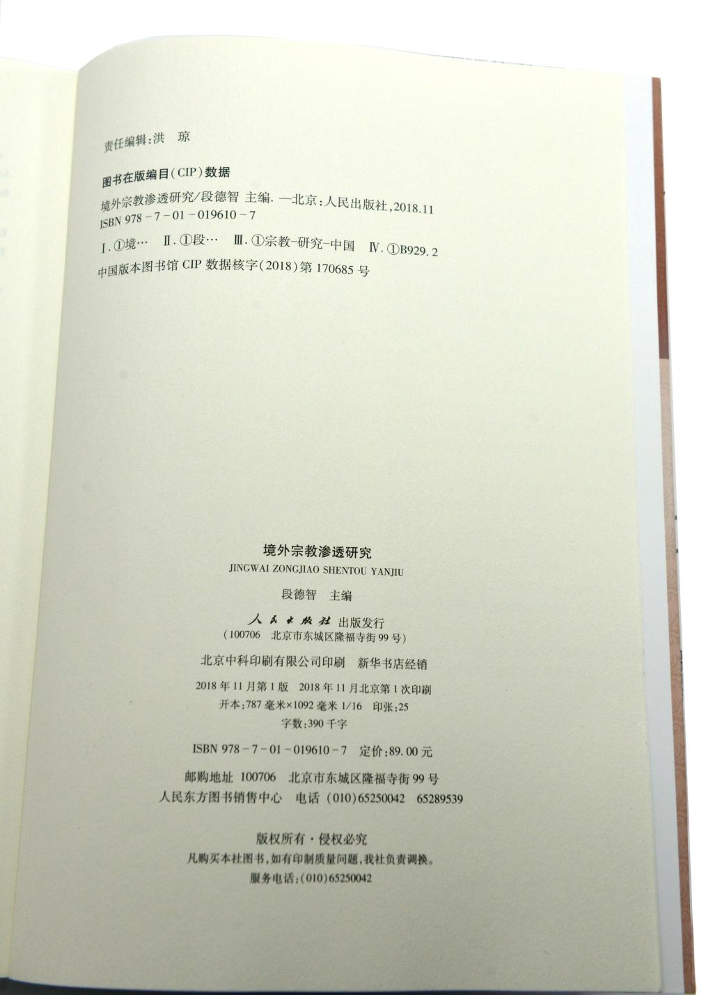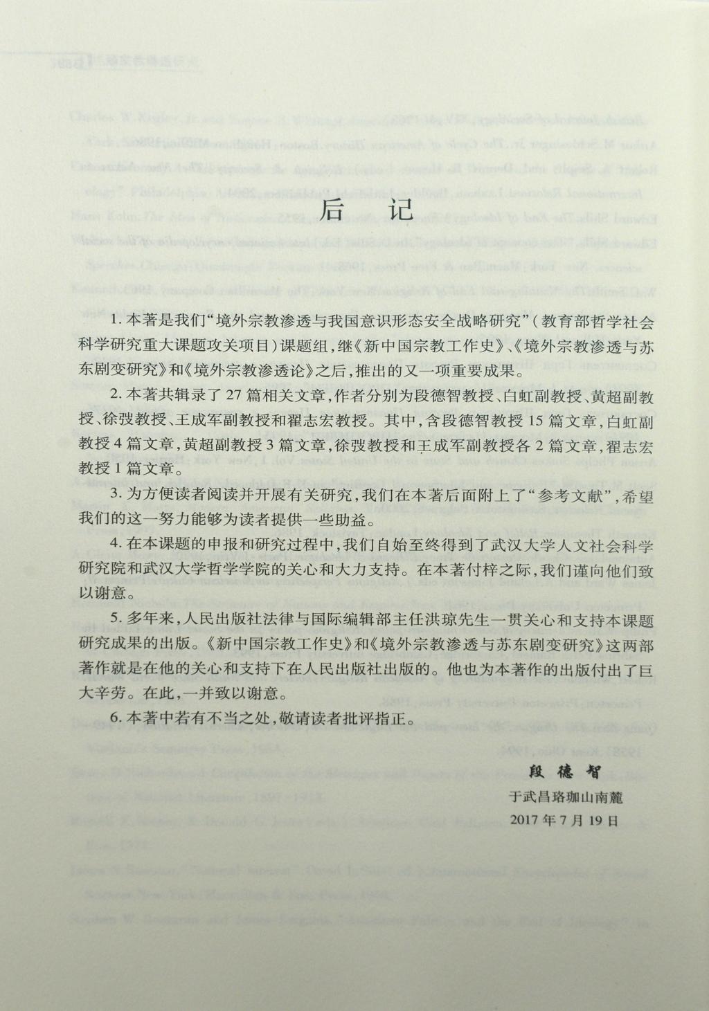 【人民出版社】段德智教授新著《境外宗教渗透研究》