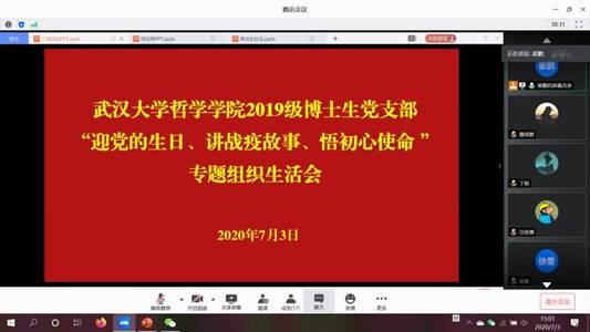 本网讯(通讯员:詹思群)2020年7月3日下午,海角社区-原创视频免费看 2019级博士生党支部开展了“迎党的生日、讲战疫故事、悟初心使命” 专题组织生活会和“共庆政治生日,永葆入党初心”的主题党日活动。支部党建指导老师吴昕炜出席本次会议,支部全体党员、积极分子参会。
