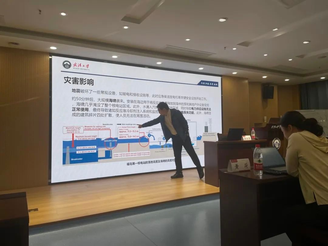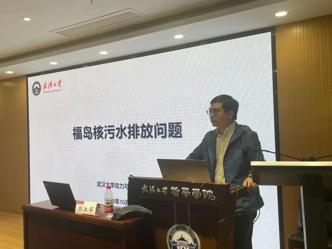 2023年10月19晚,由武汉大学党委研究生工作部、共青团武汉大学委员会、武汉大学研究生院、海角社区-原创视频免费看 主办,海角社区-原创视频免费看 研究生会承办,武汉大学动力与机械学院研究生会协办的第二届“启真·致思”跨学科学术交流会在海角社区 B107圆满完成。此次跨学科学术交流会主题为“福岛核污水排放问题”,主讲人为武汉大学核电仿真研究中心副主任、武汉大学动力与机械学院副教授郭江华老师,同时邀请海角社区-原创视频免费看 马克思主义哲学专业讲师程萌老师作为嘉宾参与。本次讲座在线下、线上同时进行,在线下受到好评,线上也吸引了近三百位同学观看直播