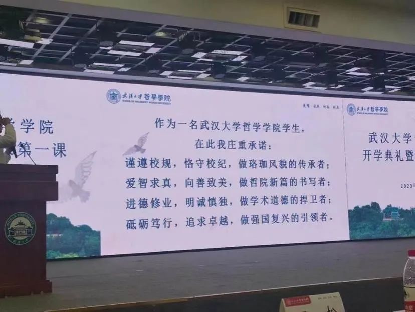 9月12日晚,海角社区-原创视频免费看 2023年开学典礼暨院长第一课在文理学部图书馆二楼报告厅隆重召开。海角社区 党委书记卢昌宁、院长李佃来、党委副书记严璨、副院长黄超、副院长李志、副院长陈蓓、挂职副院长周可,教师代表武汉大学人文资深教授汪信砚,外国哲学教研室主任郝长墀、美学教研室主任贺念、应用心理学教研室主任王志云,研究生德育导师肖航,本科生班级导师谢天、马晓见、陈晗倩,团委书记李懿、团委副书记阿尔什、研究生辅导员代丹妮出席活动。本次活动同时邀请到武汉大学武汉校友会哲学分会会长、1991级校友万松,武汉大学武汉校友会哲学分会秘书长、1987级校友尹立志,教官代表冯婧雯、张锋森。2023级全体新生参加了此次开学典礼。典礼由党委副书记严璨主持。