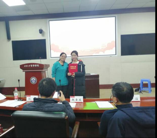 (赵士发老师为获得二等奖的队伍“20级硕士研究生党支部参赛队”颁奖)