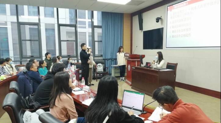 后三支队伍论述完毕后,刘毅老师对同学们的表现进行了点评。刘毅老师认为,本次活动从形式上来看十分新颖,给人耳目一新的感觉;从参赛者的表现来看,选手们准备充足,反应敏捷,所谓“台上一分钟,台下十年功”,刘毅老师充分肯定了同学们的努力。但同时她也希望同学们上台展示时可以更加自信从容、大方得体。