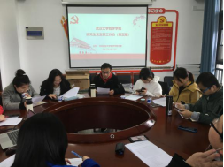 随后,刘义胜副书记代表学院党委向全体研究生党支部书记作关于研究生党支部重新拆分设置的说明,并介绍了《海角社区 研究生党支部调整设置方案(意见稿)》(以下简称“方案”)。全体研究生党支书围绕方案进行了充分讨论,对方案精神进行了肯定。对于部分支部书记提出的关于支部调整流程、时间安排等方面的疑问,刘书记一一给予了答复。