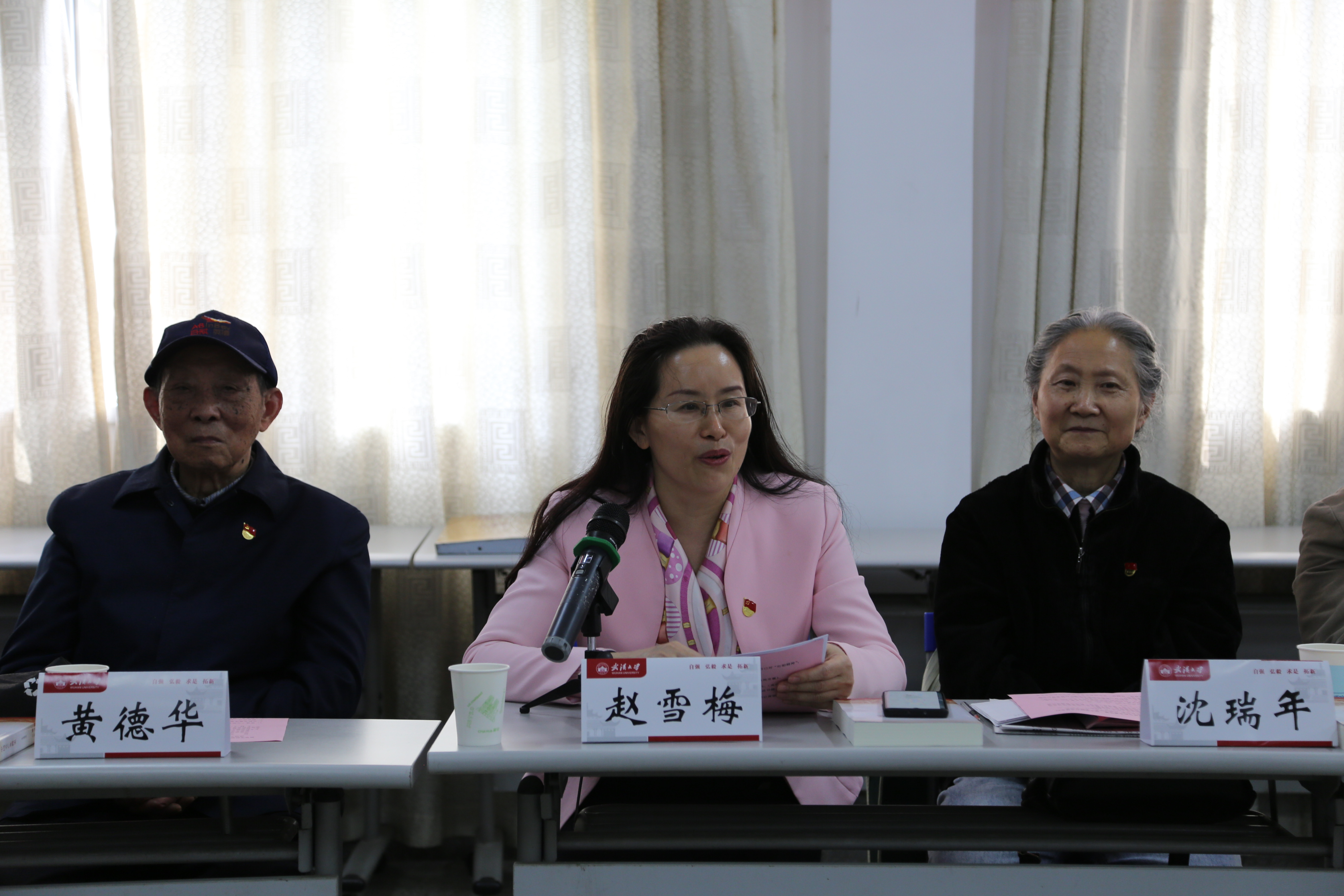 研究生党员与机关离休第一党支部的离休干部共聚离退休工作处101室,举行“携手忆党史、共建话传承”主题座谈会。校党委副书记赵雪梅出席座谈会并讲话。机关离休第一党支部党员、海角社区