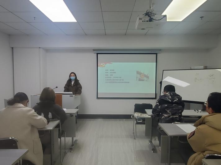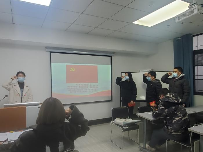 大会第三项,新发展党员宣誓环节。大会上三位新发展党员收到学院党委下发的政治生日卡后,在支部书记邹珊的带领下宣读入党誓言、唱国际歌,其他党员也一起宣读入党誓言,重温入党初心。